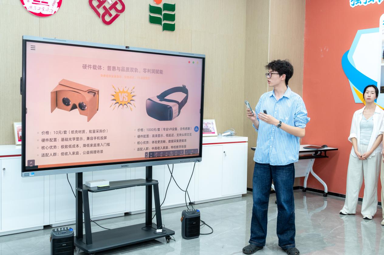 路演环节中,8支团队依次登台,围绕项目创新性、技术可行性、市场前景等方面进行展示与答辩。项目覆盖低空经济、人工智能、绿色能源、文化科技等多个前沿领域,充分体现“硬科技”与“软实力”的深度融合。以长期深耕创业管理研究、广东工业大学继续教育学院院长、管理学院博士生导师晋琳琳教授领衔的两校专家组成的评审团,从多个维度开展评审工作,并提出建设性意见,助力项目持续优化。