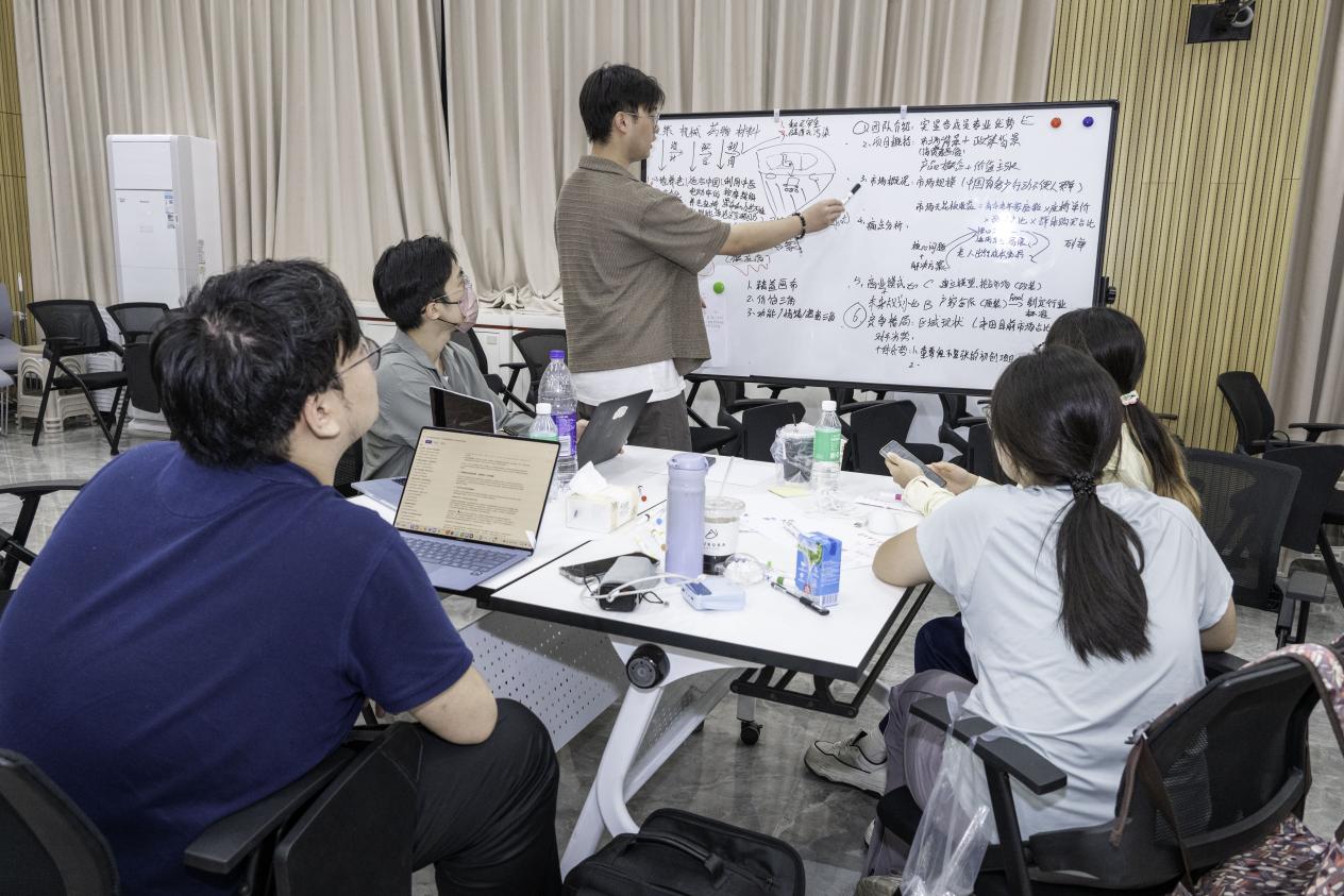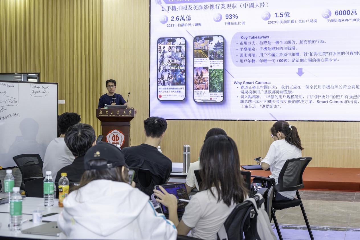 广东工业大学管理学院MBA中心主任罗美娟副教授则以“设计思维方法论与价值的黄金三角”为题,引导同学们从用户视角出发,构建“技术-价值-市场”三位一体的创新体系。“本次冲刺营是一次远超期待的体验!尤其很荣幸能聆听到罗美娟教授的专题讲座,她将“设计思维”与“价值黄金三角”等理论模型娓娓道来,为我们构建了清晰的创新逻辑框架,令我全程专注投入、受益匪浅。我与广工的同学为了共同目标协作到深夜,这种“做实事”的激情也完美印证了罗教授“行动是战胜焦虑之法”的教诲。非常期待未来能有更多机会到广工交流学习!”来自岭南大学的刘天泓同学感慨道。