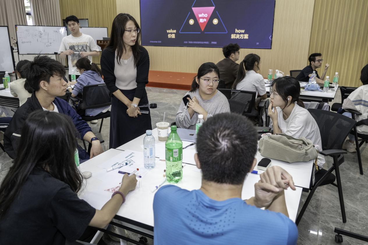 在密集的理论与案例学习后,各小组进入了紧张的项目构思与原型构建阶段。两校导师深入各团队,进行“一对一”或“一对多”的精准辅导,就技术可行性、市场定位、商业模式等关键问题提供专业建议。工大创谷内灯火常明,同学们分工协作、热烈讨论,不少团队奋战至深夜,展现出饱满的创业激情与执行力。“广工同学扎实的技术能力让创意真正落地,导师的指导更为项目后续发展指明了方向。这样的跨校共创模式,让我们对项目的来充满信心。”来自岭南大学的王廉同学分享道。