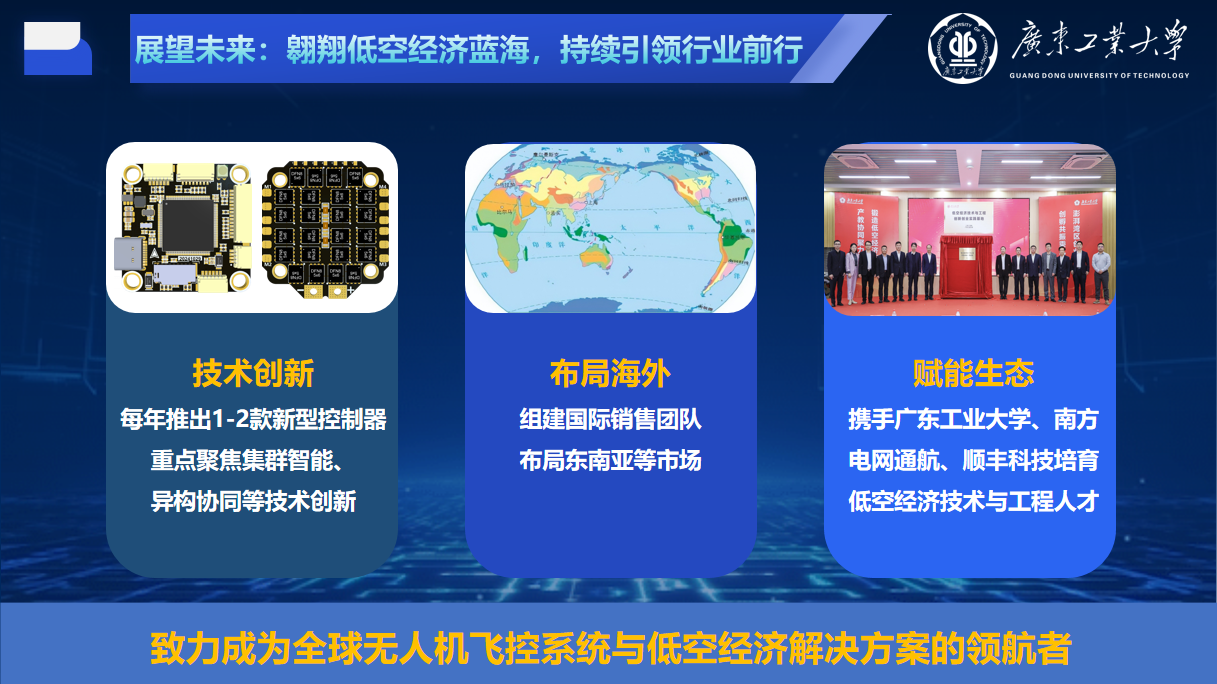陈顺成结合自身经历,向青年创业者分享了五点心得:创业要始于真实问题,科技创业应胸怀产业报国志,技术研发需要长期深耕,产品必须接受市场检验,创业更是一场需要接力的长远事业。“我并非天生创业者,只是一个相信技术能改变世界的广工学子。”他言语朴实,却透露出“让中国无人机飞得更稳、更远、更智能”的坚定使命,以及布局全球、让中国飞控服务世界的未来愿景。